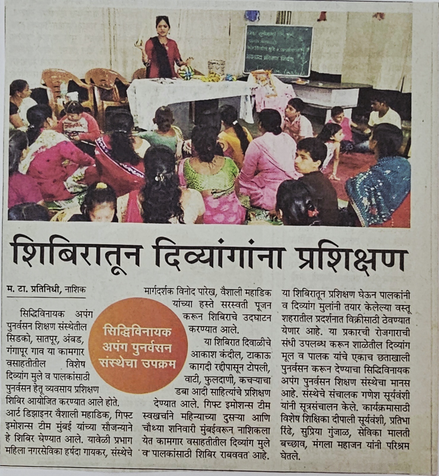 SHRI SIDDHIVINAYAK DIVYANG PUNARVASAN SHIKSHAN SANTHA, NASHIK